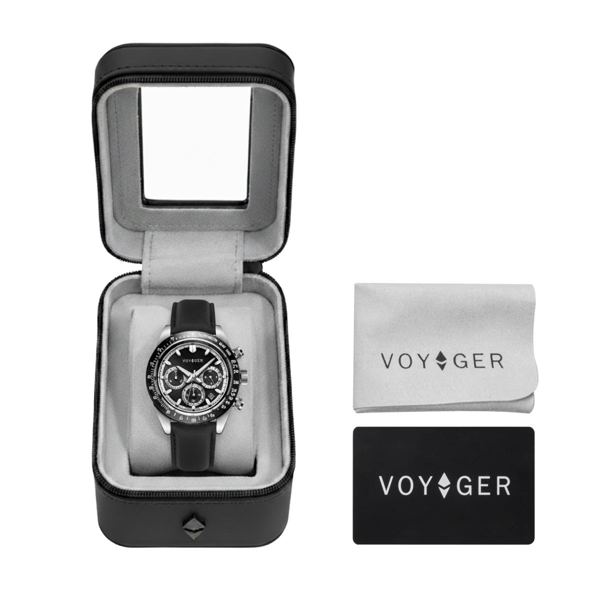Bold yet refined, this 42 mm chronograph stands out with a sharp black dial, detailed with sub-dials for precise timing. The genuine leather strap brings classic comfort, while the quartz movement delivers modern dependability. Whether flying for business or leisure, it’s a watch that balances performance with timeless style.